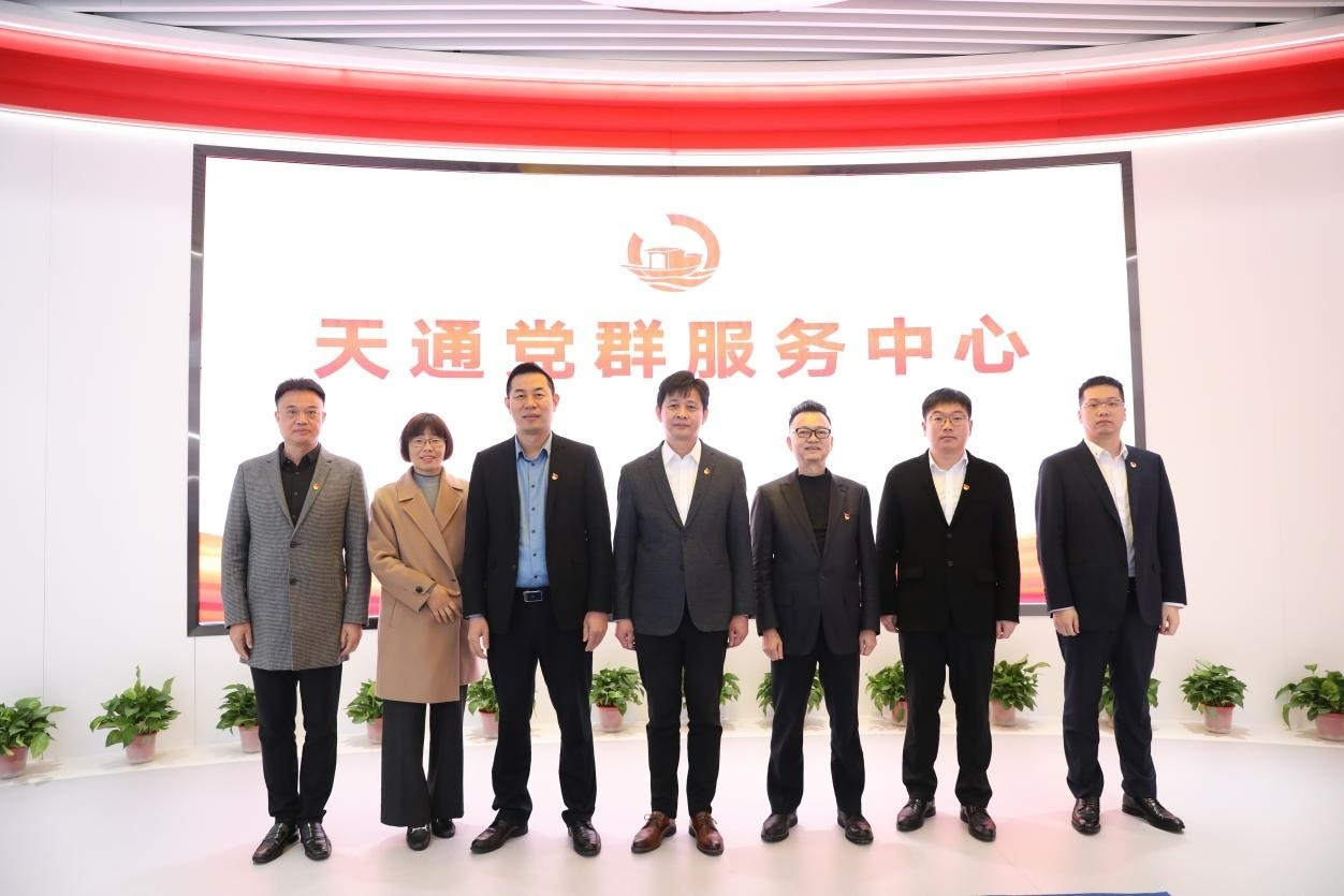 在天通黨員的共同見證下,嘉興市委組織部副部長、兩新工委書記彭林軍,海寧市委常委、組織部長呂忠飛,鹽官鎮黨委書記江超,天通公司黨委書記潘建清,海寧市委組織部常務副部長、兩新工委書記費曉義,市派天通公司黨建指導員、海寧市工商聯三級調研員顧亞興等領導一起按動屏幕倒計數,宣布天通黨群服務中心正式啟用。